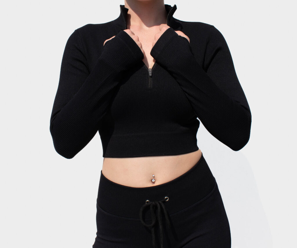 Das Model ist 1.77m gross und hat einen Taillienumfang von 69cm und trägt Grösse S&M